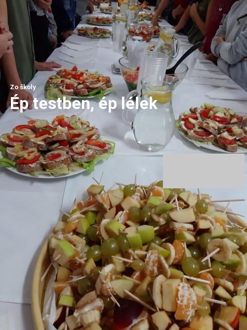 A felső tagozat által megrendezett Egészségnapon ízletes látványtálakat készítettek a diákok. A terített asztalon helyet foglalt rengeteg gyümölcs különböző kompozícióban, ínyenc tésztasaláta és görögsaláta, mennyei szendvics és persze nem utolsó sorban üdítőként pár kancsó citromos víz.