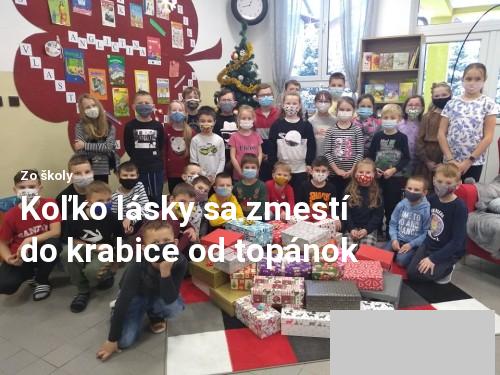 Dňa 30.11.2021 sme vyzbierané krabičky odviezli na odberné miesto do Trstenej - predajňa Naturali. Žiaci a pani učiteľky prvého stupňa v priebehu posledného novembrového týždňa pripravovali vianočné potešenie pre seniorov v núdzi. Do balíčkov sme im pribalili niečo sladké, niečo slané, niečo teplé, niečo mäkké, niečo voňavé, niečo na zábavu a všetko hlavne zo srdca. Žiaci mali počas týždňa obrovskú radosť s každým pribúdajúcim darčekom a očká im svietili ako svetielka na vianočnom stromčeku. Veľké ĎAKUJEME patrí žiakom, učiteľom ale hlavne všetkým rodičom, ktorí akýmkoľvek spôsobom podporili tento charitatívny projekt. Veríme, že každá krabička urobí obrovskú radosť tým, ktorí to najviac potrebujú.