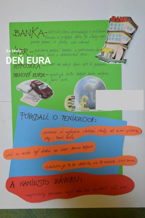 Za Medzinárodný deň eura bol Európskou úniou vyhlásený 24. september. Aj my, žiaci 1. a 2. stupňa, sme si tento deň pripomenuli projektovým vyučovaním na 4. a 5. vyučovacej hodine. Výsledok nášho snaženia si môžete pozrieť vo fotogalérii našej školy.