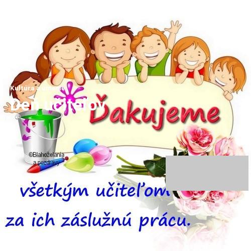 28. marec je všetkým známy ako Deň učiteľov. Práve v tento deň si najviac uvedomujeme dôležitosť Vášho povolania. Vieme, že práca učiteľov je náročná, a preto by sme Vám aj my chceli za všetko poďakovať. Ďakujeme Vám za to, že aj napriek našej nepozornosti sa nás stále snažíte naučiť niečo nové. Ďakujeme Vám za Váš čas, ktorý nám venujete aj po vyučovaní. Ďakujeme Vám za Vašu láskavosť, starostlivosť a obetu. A v neposlednom rade sa Vám ospravedlňujeme za všetky naše výtržnosti, ktoré sme však vždy spolu s úsmevom zvládli. Môžeme Vám aj miliónkrát poďakovať, aj tak to nebude stačiť na to, čo pre nás robíte Vy.