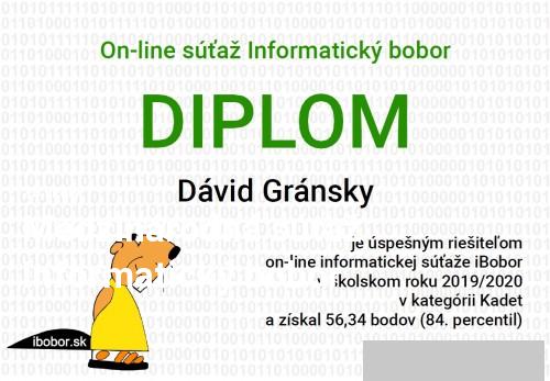 Pravidelne už niekoľko rokov sa žiaci našej školy zapájajú do medzinárodnej informatickej súťaže i-Bobor. Tento školský rok sa na Slovensku zapojilo 86 768 súťažiacich z 1 116 škôl. Žiaci našej školy súťažili v troch kategóriách: Bobrík, Benjamín a Kadet.