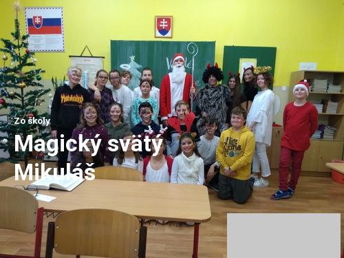 Na našej škole máme veľmi peknú tradíciu, kedy sa práce ujímajú deviataci. Veľmi sa na to celé roky tešia. Keď sa toho dočkajú, krásne sa vyobliekajú a spolu so svojou pani učiteľkou triednou navštívia každú triedu, kde sa prihovorí Mikuláš, ale aj čert, a detičky bez rozdielu veku recitujú básničky, aby dostali sladkosť.