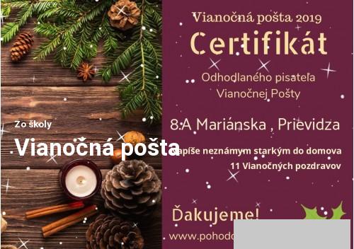 Vianoce sú pre väčšinu ľudí najkrajším obdobím roka. Sme nadšení z atmosféry, darčekov, rozprávok a predovšetkým z ľudí okolo nás. Nie sme sami. Užívame si voľné dni plné pokoja, dobrých maminých koláčov a radosti. Nie všetci však majú takéto šťastie. Je medzi nami veľa ľudí, ktorí sú sami.Žijú v rôznych centrách a nikto sa na nich nespomenie. No niekto predsa. Pani Ľubica Noščáková prišla s vynikajúcim nápadom. Napíšme pohľadnice nám neznámym ľuďom a pošlime im ich s prianím krásnych sviatkov! Nech vedia, že na nich niekto myslí. Tak sme sa s deťmi rozhodli tento krásny nápad podporiť a prihlásiť sa k tejto aktivite.Je to už tretí rok, čo sme sa zaregistrovali a čakáme na adresy "našich" starkých. Je to ušľachtilá myšlienka a ak Vás oslovila, pridajte sa k nám.