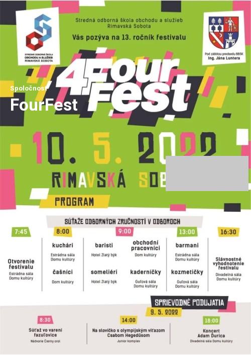 Po dvoch rokoch, kedy sa festival odborných zručností FourFest nemohol konať pre pandémiu, sa v poradí 13. ročník festivalu škôl krajín V4 uskutočnil 9. a 10. mája 2022. My, žiaci IX.A a IX.B, sme sa tohto festivalu zúčastnili spolu s pani učiteľkami 10. mája na 3. a 4. vyučovacej hodine. Bolo tam toho mnoho na videnie, aj keď sme nemali prístup všade kvôli prebiehajúcim súťažiam. Kaderníci a obchodní pracovníci sa predviedli v čase od 9.00 hod. v kultúrnom dome, kedy tam prebiehali aj spomínané súťaže. V tom istom čase prebiehali súťaže baristov a someliérov v hoteli Zlatý býk. Kaderníčky podali úžasný výkon a mladí kuchári naservírovali chutne vyzerajúce jedlo. Ponúkali tam kávu, koláčiky a iné dobroty. Všade vládla rušná atmosféra.