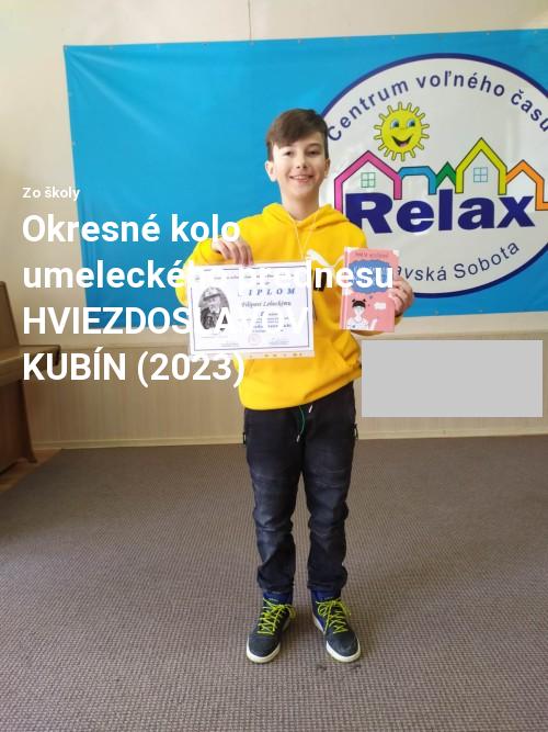 17. marca 2023 sa v CVČ RELAX v Rimavskej Sobote uskutočnilo okresné kolo 69. ročníka postupovej súťaže a prehliadky v umeleckom prednese poézie a prózy Hviezdoslavov Kubín 2023.