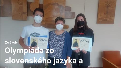 Dňa 15.10.2021 na našej škole prebehlo školské kolo Olympiády zo slovenského jazyka a literatúry, online formou. Do 14. ročníka sa zapojilo 37 žiakov, ktorí súťažili v kategórii C (žiaci 8. a 9. ročníka). Výsledky: 1. miesto: Adrian Bálint, VIII.A 2. miesto: Michaela Barnová, IX.B 3. miesto: David Nestoroski, IX.A Srdečne blahoželáme a víťazovi držíme palce v okresnom kole, ktoré sa uskutoční 12.11.
