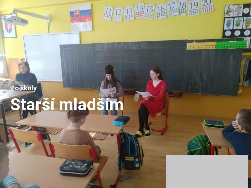 Marec – mesiac knihy sa v našej škole tradične pripomína všakovakými aktivitami a rozvojom čitateľskej gramotnosti. Žiačky 8.A triedy si pri tejto príležitosti pripravili čítanie pre ich najmenších spolužiakov, prvákov. V triedach 1.A a 1.B prečítali žiakom príbehy s environmentálnou tematikou o víle Jazmínke a škriatkovi Vendelínovi. Naši najmenší sa aj niečomu priučili. Žiakom sa čítanie veľmi páčilo, boli sústredení a zároveň si na poslednej hodine aj oddýchli a nakreslili veľmi pekné obrázky k textu, ktorý počúvali. Staršie žiačky si vyskúšali rolu učiteľa a trpezlivo odpovedali na otázky mladších spolužiakov.