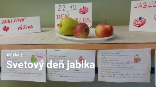 21.október bol vyhlásený za Svetový deň jablka. Aby sa na toto výborné ovocie nezabudlo, pripomenuli si ho žiaci štvrtého ročníka rôznymi aktivitami, ktoré pre ne pripravili triedne učiteľky Gabriela Kalmárová a Renáta Mitterpachová. Žiaci sa dozvedeli o význame jabĺčka pre zdravie, spoznali viaceré odrody jabĺk, o jabĺčku tvorili básničky a úspešne zvládli odpovedať aj na niekoľko kvízových otázok. Vo výtvarnom prejave žiakov sa prejavila vlastná fantázia, z čoho vzišlo veľa zaujímavých podôb jabĺčok, ktoré nám skrášlia naše okná na chodbách. Samozrejme nechýbala ochutnávka šťavnatých jabĺk a jablkových koláčikov, ktoré nám napiekli šikovné mamičky.