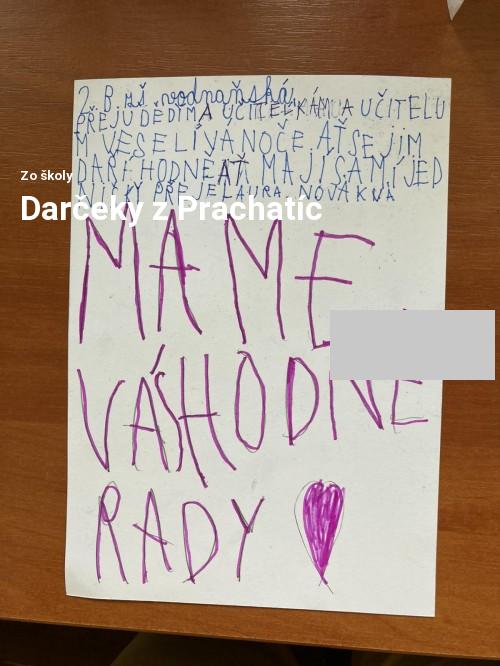 V decembri sme preto do Prachatíc poslali darčeky, ktoré zhotovili deti našej školy spolu s pani vychovávateľkami. Naši prachatickí priatelia sa im potešili a na oplátku nám aj oni poslali darčeky, ktoré vytvorili svojimi šikovnými rukami.