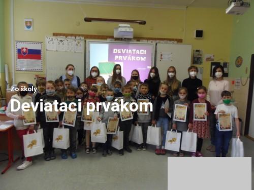 Dňa 13.4.2021 sa už tradične na našej škole konala akcia ,,Deviataci prvákom“. Za prítomnosti pozvanej pani riaditeľky PaedDr. Márie Slosiarikovej a obidvoch triednych pani učiteliek deviatakov, Mgr. Bukovčanovej a Mgr. Sklenkovej s triednou učiteľkou prvákov Mgr. Babiakovou.