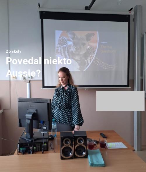 Po tejto vtipnej ukážke sme pokračovali v prezentácii, počas ktorej sa študenti dozvedeli stručný prehľad o austrálskej kultúre, histórií a geografií. Ako súčasť prezentácie sme mali možnosť diskutovať a odpovedať na rôzne otázky o Austrálii. Za každú správnu odpoveď sme mohli získať kúsok austrálskej čokolády. Prezentácia bola vedená vo veľmi priateľskom tóne, každý sa mohol zapojiť do diskusie kedykoľvek a mať rôzne otázky ,ako napríklad: „Aké sú kengury naživo“ , „Ako sa vám páči prezývka Aussie“ alebo „Pili ste niekedy niečo z topánky“ (zvláštny austrálsky zvyk). Hostia ešte mali aj krátku vtipnú ukážku austrálskeho akcentu, ktorá zábavným spôsobom priblížila austrálsku kultúru. Nakoniec sa s nami aj srdečne rozlúčili a poďakovali sa za príjemné prijatie.