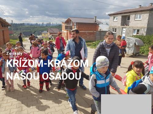 19. 09. 2019 sa predškoláci vybrali so svojimi triednymi učiteľkami, asistentom a špeciálnou pedagogičkou za svojimi kamarátmi z nultých ročníkov pred základnú školu, ktorá sídli v osade. S radosťou a iskričkami v očiach ukazovákom ukazovali na svoje príbytky. Samozrejme, že sme mali možnosť spoznať aj niektorých členov ich rodiny, či už malé deti, kývajúce spoza okien, alebo rodičov, ktorí sa s nami aj porozprávali pred vchodovými dverami. Hudba, spev a tance nás sprevádzali celou osadou. Nuž, zábava a radosť zo života tam nechýba.