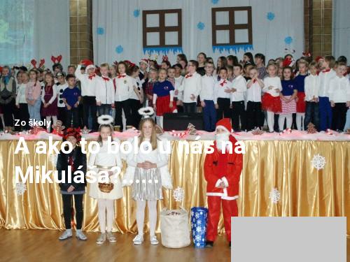 Už od začiatku školského roka sa naši žiaci zodpovedne pripravovali na túto výnimočnú udalosť. Tak ako každý rok ani tento sme nemohli zabudnúť na Mikuláša. Žiaci I. a II.stupňaza pomoci našich pani učiteliek si pripravili pestrý program plný tanca,hudby,spevu, hovoreného slova, v ktorom sa prejavilo ich umelecké nadaniea talent.