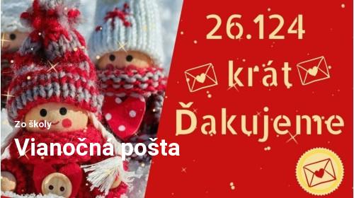 Cieľom akcie "Vianočná pošta" je prostredníctvom pohľadníc si pripomenúť nedávne tradície spojené so sviatkami ako takými, porozprávať sa o vianočných sviatkoch, zamyslieť sa nad tým, čo je v živote dôležité, vcítiť sa do kože starších ľudí. Seniori sú zvyknutí dostávať na Vianoce rukou písané listy či pohľadnice. Je to pre nich ozajstný dar – rukou písané prianie, symbol toho, že na nich niekto myslí. Pohľadnice putovali do Rožňavy, Hlohovca, Nových Zámkov, Tvrdošína, Jasovej, Detvy, Prešova a Banskej Bystrice. Táto akcia získala cenu „Srdce na dlani“: Sme radi, že pomáhate a máte srdce na dlani. Toto ocenenie patrí aj Vám.