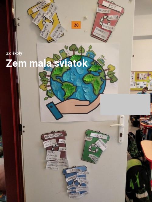 22. apríla naša Zem mala sviatok. Žiaci 4.C pod vedením pani učiteľky Márie Tomovej sa venovali problémom Zeme a jej ochrane. Zamysleli sa nad tým, ako by každý z nás mohol prispieť k ochrane prírody. Nakreslili zemeguľu a všetky návrhy do nej postupne zapisovali. Tiež zisťovali, ako správne triediť odpad a čo do neho nepatrí. Nakoniec priložili ruku k dielu a upratali prostredie v okolí školy. Za odmenu nám krásne svietilo slniečko.
