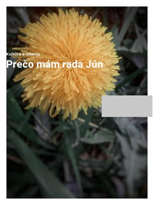 Jún je môj obľúbený mesiac. Slnko ukazuje svoju krásu a moc, vďaka ktorej mám pocit, že leto už konečne prišlo. Prehánky, ktoré sa sem-tam ocitnú, sú v dokonalom súlade s prírodou.