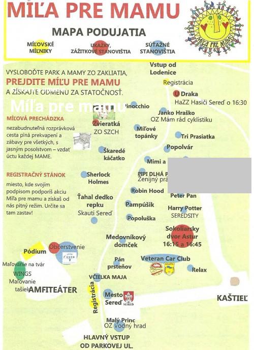 Na deň 11.5.2019 bolo pre Sereď ,,objednané" krásne počasie. Popoludní sa totiž v zámockom parku konala už po deviatykrát obľúbená akcia Míľa pre mamu. V tento deň sa tu všetci zišli, aby spolu zakričali: „Ďakujem, že si, MAMA!“ A nielen tu, ale aj na mnohých miestach na Slovensku v rovnakom čase.