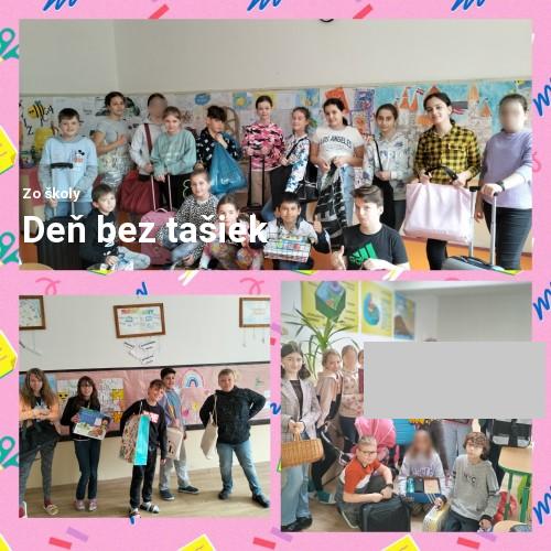 Na návrh školského parlamentu sa na škole organizoval Deň bez tašiek. Úlohou pre žiakov, ktorí sa chceli do aktivity zapojiť, bolo vymyslieť čo najoriginálnejší spôsob, ako si do školy priniesť svoje učebnice a školské potreby tak, aby nepoužili svoju školskú tašku. Žiaci boli naozaj veľmi kreatívni. Veď posúďte sami.