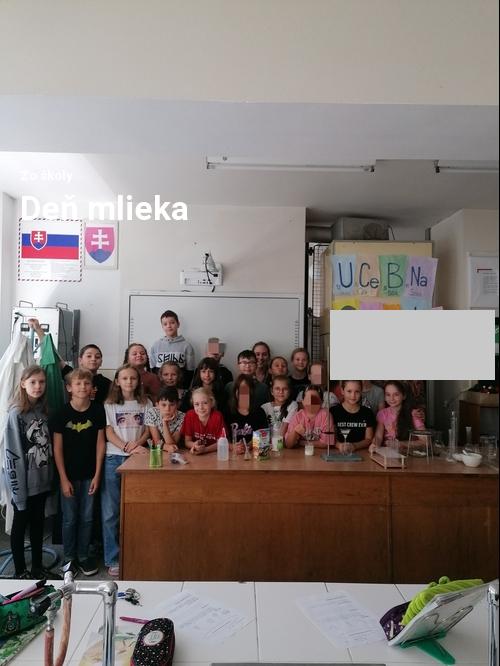 Pri príležitosti Dňa mlieka na školách sa žiaci zapojili do aktivít spojených s témou mlieka. Okrem toho, že sa obliekli do bieleho a priniesli si zaujímavé mliečne desiate, sa téme venovali aj kreatívne. Na hodinách geografie vytvorili žiaci z mliečnych obalov typické pamiatky a zvieratá Austrálie (9. roč.), mapu s charakteristickými pamiatkami, živočíchmi a kmeňmi pôvodných obyvateľov Afriky (6. ročník). Na hodinách techniky vytvorili žiaci kravičku z kartónu. A na hodinách biológie a chémie sa venovali významu mlieka pre ľudské telo. Pri pokuse dokazovali prítomnosť bielkovín, ich význam a obsah v jednotlivých mliečnych produktoch.
