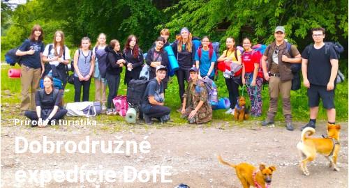 Ak chce mladý človek získať významné ocenenie vojvodu z Edinburghu - DofE, musí na sebe vytrvalo pracovať celý rok a prekonať štyri výzvy. Poslednou výzvou je zvládnuť dobrodružnú expedíciu. Aj naši žiaci sa tento rok úspešne prebojovali celým programom a v priebehu dvoch víkendov absolvovali dve dobrodružné expedície. Podali neuveriteľný výkon, pretože ich čakal veľmi náročný presun peši s ťažkými batohmi, so stanmi a spacákmi do lesa na Kráľovej studni, kde plnili úlohy, potrebné na prežitie v lese. Založili svoje táborisko, rozložili oheň, pripravili teplé jedlo, učili sa zásadám prvej pomoci i tímovej práci a odvážne prežili noc uprostred tmavého lesa, aby s obrovskou záťažou opäť zvládli peší presun domov. Statočne bojovali s počasím, s únavou, s diskomfortom i s obavami pred divou zverou v okolí. Zaslúžia si oprávnene náš obdiv.