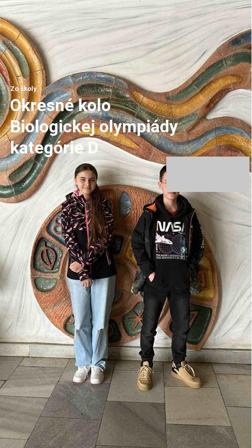 Dňa 25.4.2024 sa v CVČ Košice uskutočnilo okresné kolo Biologickej olympiády kat. D, ktorá je určená pre žiakov VI. a VII. ročníka. Veľkým úspechom je 2. miesto Kristíny Vojtaškovej zo VII. A triedy. Úspešným riešiteľom bol aj Teo Sárossy zo VII. A triedy.
