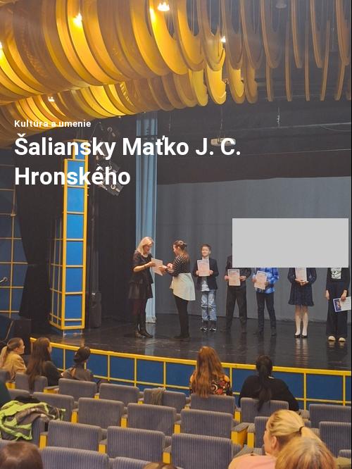 Dňa 08. 02. 2024 sa žiačka VI.A triedy, Kristína Bačová, zúčastnila okresného kola súťaže ŠALIANSKY MAŤKO J. C. Hronského. Našu školu výborne reprezentovala v prednese slovenskej povesti a získala nádherné prvé miesto.