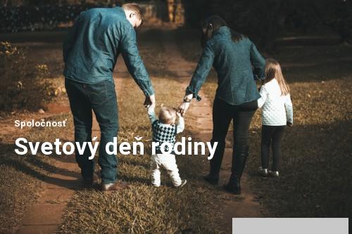 Svetový deň rodiny, ktorý bol vyhlásený v roku 1993 Organizáciou spojených národov (OSN), oslavujeme 15. mája. Význam tohto dňa spočíva v pripomenutí dôležitosti rodiny ako základnej stavebnej bunky spoločnosti. Súčasne je možnosťou, aby sa národné inštitúcie zaoberajúce sa touto problematikou zamysleli nad rodinnou politikou vo všetkých krajinách.