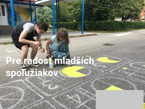 Dňa 18. 06. 2019 v okolí školy Bernolákova 16 pod vedením pani učiteľky Mirky Kucikovej a za pomoci žiačok Viki Hajnalovej a Viki Slávikovej pribudli na chodníku rôzne edukačné maľby a hravé preskakovačky pre deti z I. stupňa.