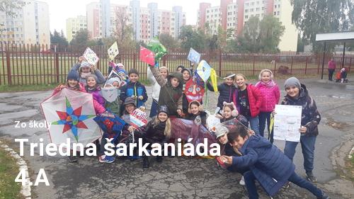 Žiaci zo 4.A súťažili v „Triednej šarkaniáde“ o najkrajšieho, najoriginálnejšieho a najlepšie lietajúceho šarkana. Šarkanov si žiaci vyrábali samy na hodinách výtvarnej výchovy a pracovného vyučovania. S niektorými pomohli trochu aj rodičia. Do súťaže sa mohli zapojiť aj kúpené šarkany, ale cenu mohli získať iba v poslednej kategórii. Spomedzi žiakov bola určená porota, ktorá vybrala nasledovných víťazov: