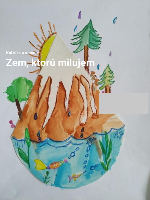 The Earth I Love. Pod týmto heslom sme s prvákmi tvorili výtvarné práce na anglickú výtvarnú súťaž. Celá kompozícia je umiestnená do kvapky vody, keďže voda tvorí tri štvrtiny našej modrej planéty. Stvárnili sme život vo vode a na súši. Vrchnú časť kvapky tvorí akási hora - vrch, ktorý predstavuje zároveň aj pôdu. Hora je obklopená stromami, kvetmi, hubami. Na jednej strane zapadá Slnko ako náš najväčší zdroj svetla a tepla, na druhej strane prší, keďže voda je potrebná aj pre život rastlín. Spodnú časť obrázka tvorí voda, v ktorej je tiež život - vodné rastliny a živočíchy. Pri tvorbe diel sme kombinovali prácu s voskovými a vodovými farbami a prváci si to náramne užili! :-)