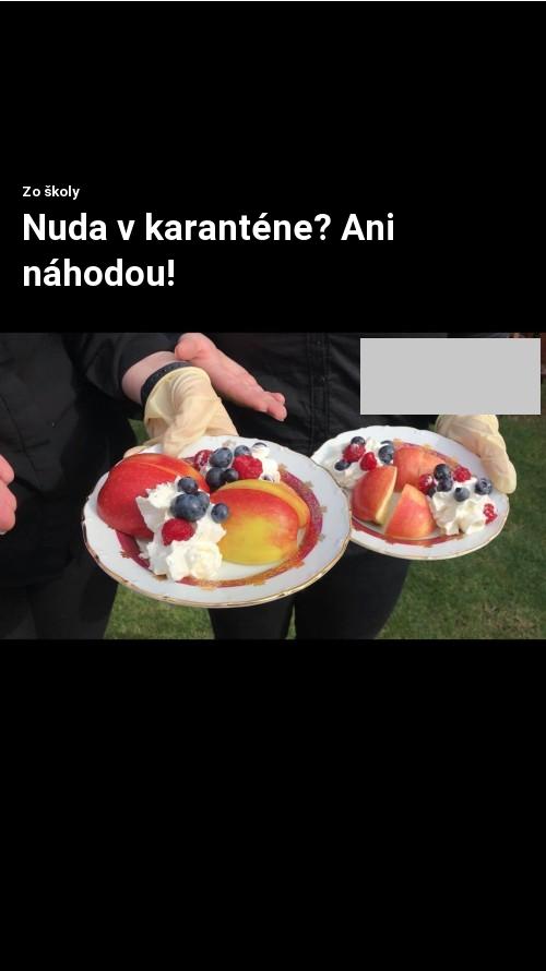 Vyše mesiac trvajúce „korona-šialenstvo“ je predsa len na niečo dobré. Keďže dostávame „online úlohy“ určite sa nenudíme. Za úlohu z nášho odborného výcviku sme dostali tranšírovať. Tranšírovanie je v podstate správne naporcovanie kúskov mäsa s kosťou, ovocia, rýb, bažantov a veľa iných druhov potravín. Presne takúto úlohu sme dostali - tranšírovať ľubovoľné tri druhy ovocia. Hneď, ako sme sa dozvedeli úlohu, začali sme vymýšľať nejakú perfektnú show. Prešlo pár dní, počas ktorých sme všetko naplánovali. A keďže bol krásny slnečný víkendový deň, stretli sme sa, samozrejme s rúškami a rukavicami, v záhrade u spolužiačky a naše predstavy sme začali realizovať. Počas tranšírovania banánu sa nám stali rôzne situácie ako napríklad: šupka z banánu bola taká tvrdá, že sa nedala rozkrojiť - skoro sme rozrezali celý banán. (: Ďalej sme tranšírovali kiwi a jablko (tie sa celkom podarili). Určite takéto úlohy nám pomáhajú sa učiť a trénovať naše zručnosti. Týmto príspevkom sme chceli inšpirovať aj vás, aby ste vyplnili svoj voľný čas a skúsili tranšírovať, verte mi, zažijete pri tom veľa smiechu, zábavy ale aj skúseností. Prajeme pekný deň!