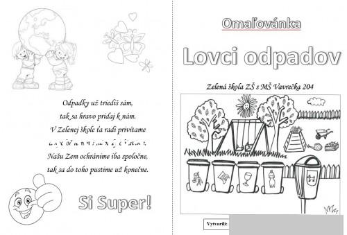 Každoročne pribúdajú do nášho školského kolektívu aj maličkí žiaci- prváčikovia. Zoznamujú sa s novou triedou, radostne si obzerajú nových spolužiakov, či pani učiteľku. Učia sa novým pravidlám, spoznávajú písmenká či čísla. Aby toho nebolo málo, hneď sme ich oboznámili aj s našim cieľom- byť Zelenou školou. Druháci si pre prvákov pripravili zaujímavé aktivity o triedení odpadkov v našej škole. Spoločne si pozreli aj krátku animovanú rozprávku Recyklónia, v ktorej bolo množstvo užitočných rád o triedení a recyklovaní odpadu. Keďže prváčikovia úžasne pracovali a triedili odpadky, zaslúžili si odmenu. Každý si odniesol omaľovánku Lovci odpadov, ktorú vytvorili štvrtáci na hodinách informatickej výchovy. Sme radi, že už každý žiak v našej škole dokáže nielen minimalizovať množstvo odpadkov, ale ich aj správne triediť.