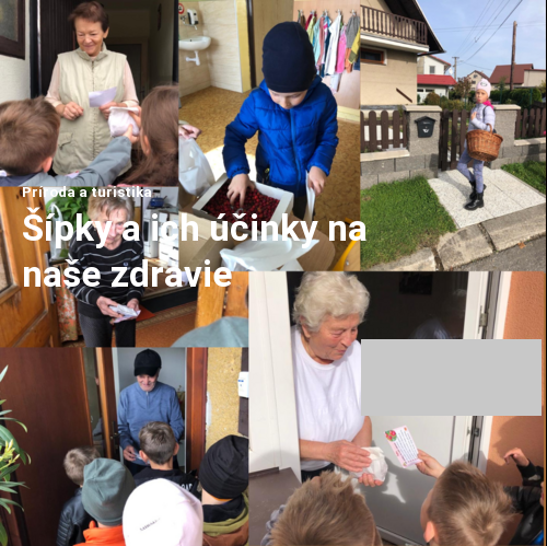 Žiaci 2.A nazbierali v prírode šípky, ktoré potom v škole vysušili, pobalili do balíčkov a rozhodli sa nimi obdarovať starších ľudí z obce. Pripraveným letáčikom ich informovali o liečivých účinkoch šípok.Spoluobčania im boli vďační nielen za darček, ale hlavne za prejavenú pozornosť, milé slová a úsmev, ktorý v ten deň nikomu nechýbal. Na oplátku žiaci dostali nielen odmenu v podobe sladkostí, ale aj chutné domáce hrušky.