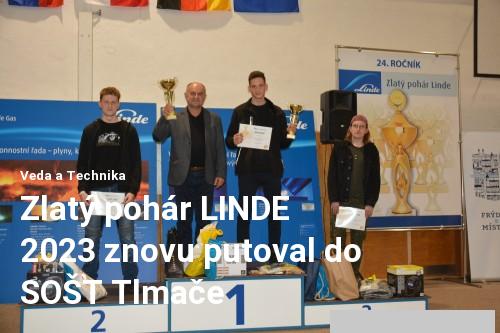 Vo Frýdku Místku sa v dňoch 17. -19. apríla 2023 konal 24. ročník medzinárodnej zváračskej súťaže žiakov stredných škôl o Zlatý pohár LINDE 2023. Súťaže sa zúčastnilo celkovo 95 mladých zváračov zo 34 škôl z Česka, 7 škôl zo Slovenska a 2 školy z Nemecka. Tento ročník súťaže sa uskutočnil po trojročnej pandemickej prestávke. Úroveň tejto prestížnej súťaže aj v tomto ročníku nijako nezaostala, a vrátila sa znovu na tú istú úroveň ako v predošlých ročníkoch. V hodnotiacej komisii mala zastúpenie každá krajina. Slovensko zastupovali doc. Ing. Jozef Jasenák, PhD. a Ing. Dušan Malárik z Cechu zváračských odborníkov Trnava. Súťažilo sa v štyroch metódach: TIG (141) - zváranie v ochrannej atmosfére Argónu, MIG/MAG (135) - zváranie v ochrannej atmosfére CO2,, MMA (111) – zváranie elektrickým oblúkom obalenou elektródou, GAS (311) – zváranie kyslíkovo-acetylénovým plameňom. SOŠT Tlmače reprezentovali Peter Štefanka, MMA (111) , Adrián Mihál, MIG/MAG (131/135) a Pavol Lasab, TIG /141) všetci žiaci druhého ročníka študijného odboru mechanik strojov a zariadení II.E trieda. Pedagogický sprievod zabezpečovali inštruktor zvárania a zároveň aj majster odborného výcviku Bc. Ján Salaj a majster OV Mgr. Jaroslav Borik. Úroveň súťaže sa z roka na rok zvyšuje a konkurencia rastie. Nie je jednoduché stáť na stupňoch víťazov v silnej medzinárodnej konkurencii. Všetky krajiny svojich zástupcov vyberajú veľmi starostlivo. Preto sa aj naša škola a naši žiaci na túto súťaž poctivo a vzorne pripravovali. Nič sme nechceli nechať na náhodu, a to sa odrazilo aj na výsledku. Tlmačania znovu ukázali že patria medzi svetovú špičku vo zváraní medzi žiakmi stredných škôl. 1. miesto a teda Zlatý pohár LINDE 2023 priniesol domov Pavol Lasab, ktorý stál na najvyššom stupni a zaslúžil sa o víťazstvo v metóde 141 TIG. Ani ostatní súťažiaci z našej zváračskej školy sa nestratili a umiestnili sa na krásnych bodovaných miestach vo svojich kategóriách. Peter Štefanka obsadil v kategórii 111 MMA 5.miesto a Adrián Mihál v kategórii 135 MAG 4.miesto. Poďakovanie patrí všetkým zúčastneným žiakom za vzornú reprezentáciu školy a celého Slovenska na náročnej súťaži. Zásluhu na našom úspechu má aj Zváračská škola pri Tatravagónke Tlmače, ktorá aktívne pomohla s prípravou žiakov na súťaž. História uplynulých ročníkov súťaže potvrdzuje, že mladí zvárači z Tlmáč tu majú svoje pravidelné zastúpenie.Treba pripomenúť, že za posledné obdobie to už bolo naše desiate víťazstvo. Prvý Zlatý pohár Linde si z Frýdku Místku v roku 2007 priniesol Ivan Laurečník, nasledoval František Holečka (2009), Štefan Farkaš a Matúš Dóka (2010), Peter Jakubík (2011), Dávid Baláž (2013 a 2014 )Frederik Machajdík 2016 Jakub Kuruc 2019.Mená týchto úspešných mladých zváračov sú zapísané veľkými písmenami v kronike súťaže. Dosiahnuté úspechy budú dozaista motiváciou aj pre ďalších žiakov našej školy. Bc.Ján Salaj inštruktor zvárania-majster OV SOŠT Tlmače