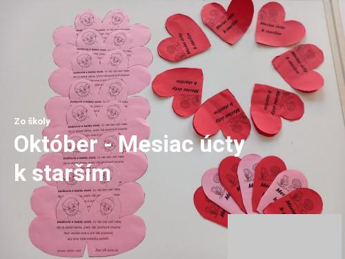 Október je mesiac, kedy nielen staršia generácia s väčším záujmom vníma vlastný vek a obhliada sa v spomienkach zapísaných do stránok knihy života, ale aj mladšia generácia uvedomuje si opodstatnenosť a pevné miesto, ktoré v ich živote zaslúžene patrí starým či prastarým rodičom. Ani žiaci našej školy nezabudli na našich seniorov. Svoju vďaku, úctu a pozornosť im vyjadrili vyrobením milých pozdravov žiaci z nižších ročníkov, starší žiaci a Samuel Hegedüš zo šiesteho ročníka vďačne zarecitoval dojemné verše.