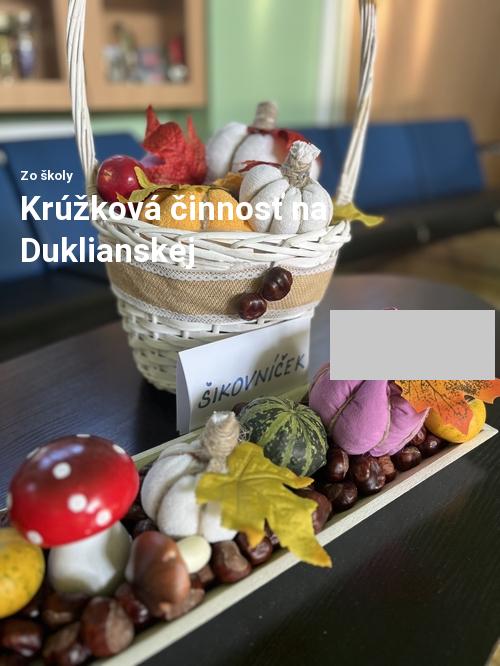 Na našej škole je krúžkov naozaj neúrekom, napríklad: stolnotenisový, florbal, šikovníček, kreatívny, origami, rozprávková angličtina, veselé logo a množstvo iných. Ako každý rok, tak aj tento školský rok bola na našej škole možnosť prihlásiť sa na záujmové útvary pomocou vzdelávacieho poukazu, ktorý dostal každý žiak na ZŠ Duklianska. Ponuka krúžkov je naozaj pestrá a teda vôbec nie sú len o škole. Sú napríklad športové, výtvarné a máme tu aj zdravotnícky krúžok. Žiaci sa môžu veľmi veľa naučiť pretože tu máme aj krúžky, ktoré žiakom pomáhajú lepšie pochopiť učivo, napríklad pre našich deviatakov, aby úspešne a hravo zvládli Testovanie 9. Na krúžku origami alebo šikovníček si žiaci môžu trénovať svoje prsty a ruky a vyrábať krásne výrobky či už z papiera alebo iných materiálov. Žiaci sa môžu v tento po vyučovací čas realizovať a využiť svoju kreativitu. Krúžky ponúkajú žiakom aj skvelú zábavu a veľa zážitkov a sú u žiakov veľmi obľúbené.