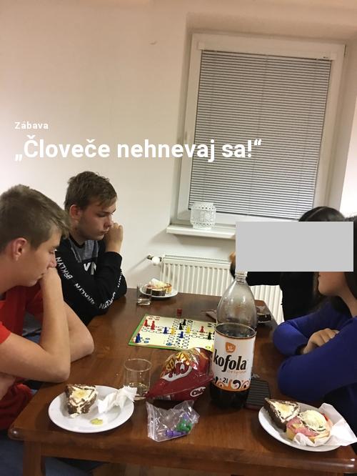 Ako každý rok, aj tento rok prebehol turnaj „Človeče nehnevaj sa!“. Účasť bola hojná, nálada výborná, popri  hre sme si  zamaškrtili na banánovej strieške a obloženým chlebíčkom tiež nič nechýbalo.  Výhercovia:	1. miesto – Petráš Martin 		2. miesto – Šedaj Samuel a Dišpiter Róbert 		3. miesto – Klimek Martin 		4. miesto – Zemková Dominika  Chlapci Šedaj a Dišpiter, ktorí obsadili  2. miesto, svoju výhru darovali dievčatám, ktoré ich povzbudzovali, za čo im ďakujú.