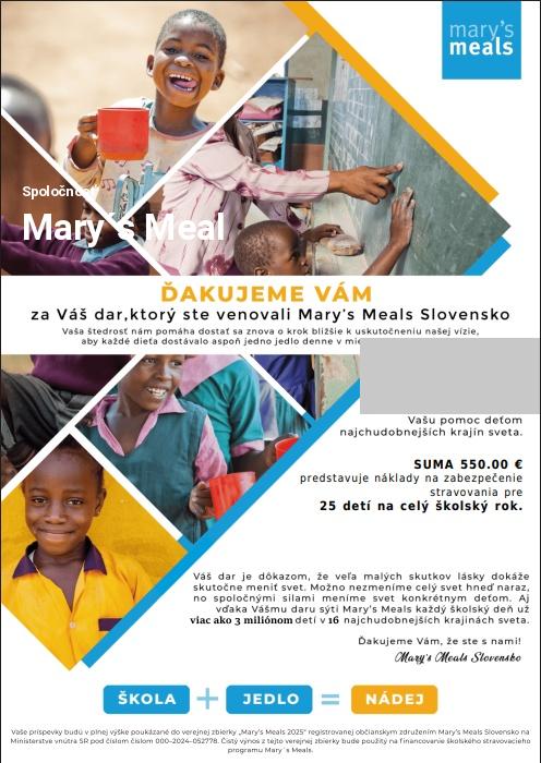 Cieľom našej koláčikovej zbierky z dňa 20.10. 2025 bolo pridať sa ku projektu za školské jedlo pre 701 detí zo školy Nakazimu v Malawi, no vďaka vám sa nám to podarilo viac ako dvojnásobne! Spoločnými silami sa na celom Slovensku vyzbierala suma, ktorá predstavuje náklady na nasýtenie 1 805 detí na celý školský rok. Výťažok môže byť teda použitý na zabezpečenie školských jedál nielen pre deti v Nakazimu, ale aj pre ďalšie školy, ktoré našu pomoc potrebujú. Ďakujeme vám v mene všetkých detí, ktorým ste zabezpečili jedlo a priniesli nádej pre lepšiu budúcnosť. Každý váš príspevok u nás na škole znamenal jedlo na celý rok, úsmev a nádej pre 25 + 1 detí, ktoré sa môžu vďaka školskému jedlu učiť a snívať o lepšej budúcnosti. Za jedno dieťa sme so žiakmi školy odbehli virtuálny beh.