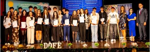 Dňa 30.09. 2025 sa žiaci bývalého deviateho ročníka dočkali svojho slávnostného oceňovania za celoročný boj, ktorý zvládali v rámci medzinárodného projektu DofE ako žiaci na našej škole. Byť ocenený touto cenou znamená získať nálepku za zodpovednosť, húževnatosť, ľudskosť, často aj veľké sebazaprenie, odvahu, cieľavedomosť. Slávnosť prebehla za účasti výnimočných hostí a my Vám s obrovskou hrdosťou predstavujeme našich 32 absolventov a držiteľov medzinárodnej ceny DofE. "Som rád, že vás je každým rokom viac. Program DofE je časť cesty, ale podstatné je, že sa naučíte po nej bežať. Čas, ktorý ste do seba investovali, sa vám mnohonásobne vráti”, povzbudil mladých ľudí predseda Košického samosprávneho kraja Rastislav Trnka. Dôležitosť programu DofE pre mladých ľudí zdôraznila aj Lucia Gurbáľová, námestníčka primátora mesta Košice: „Od spolupráce s DofE si veľa sľubujem. Vidíme, že DofE dáva mladým priestor na rast a zdokonalenie.“