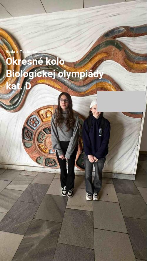Dňa 24.4.2025 sa v CVČ Košice uskutočnilo okresné kolo Biologickej olympiády kat. D, ktorá je určená pre žiakov VI. a VII. ročníka. Úspešnými riešiteľkami sa stali Adela Košuthová zo VI. B a Timea Gogová zo VII. B. Obom srdečne blahoželáme!
