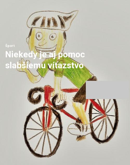 O chvíľu deti zmizli v lese. Všetci s napätím očakávali, kto sa z lesa vyrúti ako prvý. Dav nadšene tlieskal, pískal, povzbudzoval. U niektorých bolo vidieť poriadnu nervozitu. Zrazu sa deti vyrútili z lesa a vošli do poslednej zákruty. Zle som sa vyjadril. Nie deti, skôr dvaja pretekári. Bol to chlapec s číslom 24 a hneď za ním chlapec bez jednej nohy. Bolo neuveriteľné, aký náskok si aj napriek tomu hendikepu dokázal vybojovať a že ho predbehol iba jeden pretekár. Pretekári vchádzali do poslednej zákruty, ľudia kričali. No zrazu všetko stíchlo. Chlapec s hendikepom padol a bolo to tesne pred cieľom. Cyklista, ktorý bol pred ním, sa obzrel. Keď ho uvidel ležať na zemi, neváhal a pred cieľom to otočil. Prišiel k nemu a rýchlo mu pomohol nastúpiť. Ostatní pretekári sa už blížili. Muselo to byť veľmi rýchle, aby ich nedobehli ostatní. Keď nastúpili obaja na bicykle, rýchlo sa rozbehli a trielili do cieľa.