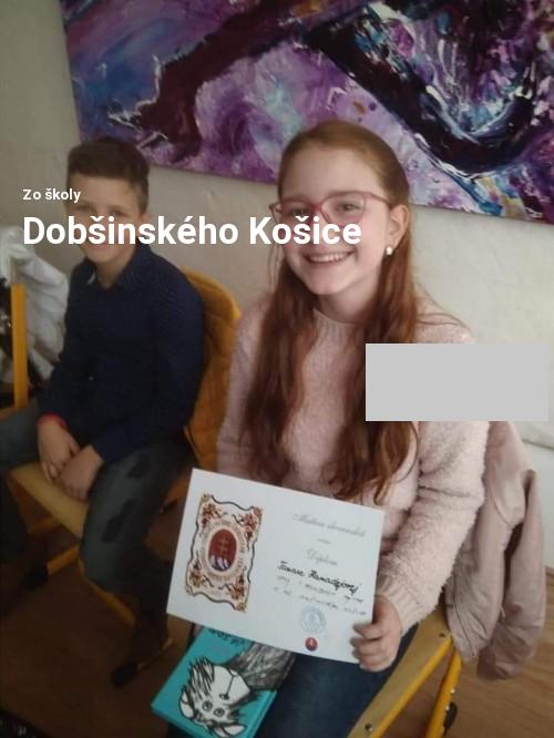 V utorok, 29. októbra 2019 sa v Košiciach konal 15. ročník krajského matičného festivalu DOBŠINSKÉHO KOŠICE. Tejto krajskej súťaže sa zúčastnilo viac ako 40 škôl a 80 účinkujúcich. Žiaci súťažili v prednese pôvodnej slovenskej ľudovej rozprávky a autorských rozprávok. Z našej školy sa tejto súťaže zúčastnili žiaci Jakub Hreňko zo 4.a a Tamara Hamadejová zo 7.b. Tamara Hamadejová získala v náročnej konkurencii pekné 3. miesto.