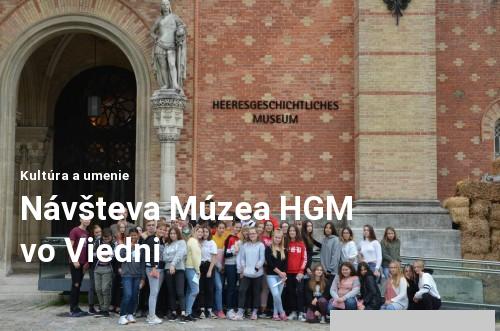 Dňa 25.9.2019 sme so žiakmi 9.ročníka navštívili Múzeum HGM vo Viedni (vojenské múzeum). Prezreli sme si expozície zamerané na obdobie protitureckých vojen, obdobie 1. a 2. svetovej vojny a taktiež expozície Rakúska ako námornej veľmoci. Naša exkurzia bola zameraná na Sarajevský atentát, ktorý bol akýmsi spúšťačom 1.svetovej vojny, ktorá priniesla obrovský počet obetí dovtedy nevídaných rozmerov. Žiakom sa podľa ich vlastných slov expozície veľmi páčili a boli pre nich prínosom. S najväčším ohlasom sa stretla časť venovaná exponátom priamo súvisiacim s atentátom (auto, v ktorom bol zastrelený následnícky pár, ako aj uniforma následníka trónu, ktorú mal v tom čase oblečenú).