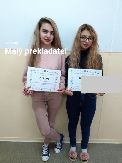 Zo žiakov deviateho ročníka sa v mesiaci november na chvíľku stali prekladatelia. Zúčastnili sa triedneho kola prekladateľskej súťaže Malý prekladateľ. Vyskúšali si preklad článku z anglického jazyka do slovenčiny s názvom Počasie v Británii. Výherkyňami sa stali Mária Polhošová a Sarah Bačová. Ďakujem žiakom za účasť, spoluprácu a teším sa aj na ďalšie ročníky.