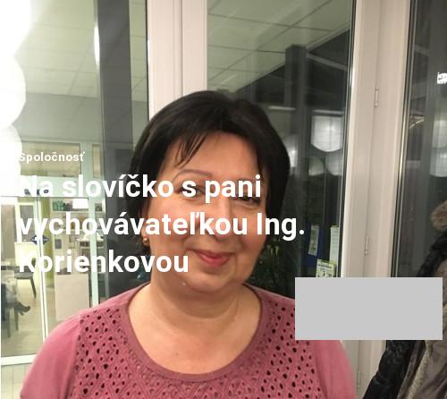 Na slovíčko s pani vychovávateľkou Ing. Korienkovou