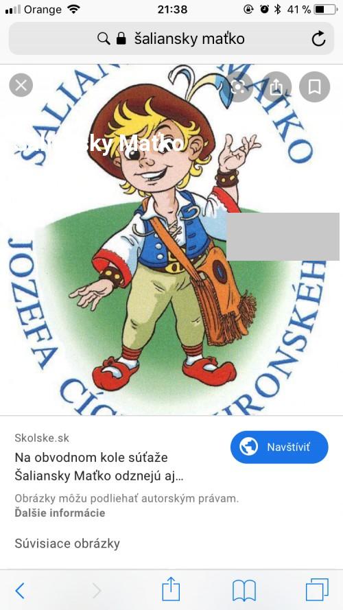Ahojte! 18.12.2019 sa v knižnici našej školy uskutočnilo školské kolo recitačnej súťaže Šaliansky Maťko. Je to recitačná súťaž, na ktorej sa musíš naučiť naspamäť celú povesť. Ja som sa tiež zúčastnila na Šalianskom Maťkovi za našu triedu - 4.C a recitovala som povesť zo Záhoráckych povestí Štefana Moravčíka -  Vodník z Hámrov. Vyhrala som 3.miesto a hrozne som sa tešila. Boli sme rozdelení na 1.kategóriu a na 2.kategóriu, v ktorej boli boli okrem nás, štvrtákov, aj piatačky. Žiačka zo  4.A , Laura Kaňková, vyhrala 1.miesto. Medzi súťažiacimi z tretieho ročníka bol najlepší Jakub Kopačka z 3.B.  Boli tam so mnou aj moje spolužiačky a myslela som si, že vyhrajú ony, ale nakoniec som 3.miesto vyhrala ja. Všetky povesti, ktoré sme si vypočuli, sa nám veľmi páčili a napokon sme aj my, deti, rozhodli o cene diváka. Bolo to príjemne strávené dopoludnie.