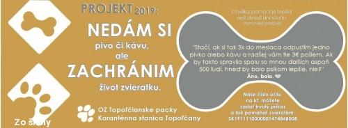 V dňoch 2. 12. – 6. 12. 2019 sa vo vestibule našej školy konala dobročinná vianočná finančná i materiálna zbierka pre Karanténnu stanicu v Topoľčanoch – Občianske združenie Topoľčianske packy. Do zbierky sa počas piatich dní zapojilo množstvo žiakov, rodičov i zamestnancov našej školy. Vďaka súcitu a empatii všetkých zúčastnených sa nám už v prvých dňoch podarilo pre našich štvornohých kamarátov z Karanténnej stanice vyzbierať množstvo krmiva, hračiek, prikrývok, uterákov, oblečkov... Psíkov, ktorí dosiaľ nemali šťastie na láskavú náruč majiteľa, určite poteší i plná škatuľa tenisových loptičiek či piškót. Mačičky budú mať istotne radosť z dobrôt pre hladné brušká, ale aj zo škrabadla, na ktorom si môžu brúsiť svoje pazúriky. Nezanedbateľnou súčasťou našej akcie bola i finančná zbierka. Pre potreby obyvateľov Karanténnej stanice sa nám podarilo vyzbierať spolu 151, 21€. Výnos z finančnej i materiálnej zbierky sme v dňoch 13. a 16. 12. 2019 odovzdali p. Petre Pazallovej, ktorá sa spolu so svojimi kolegyňami každý deň neúnavne stará o zvieratá, ktoré to nemajú vo svojom živote ľahké a potrebujú pomoc. Ďakujeme všetkým, ktorí akýmkoľvek spôsobom prispeli k úspešnému priebehu zbierky a pričinili sa tak o zlepšenie podmienok života opustených, zanedbávaných a týraných zvierat v našom meste a blízkom okolí. Veľké poďakovanie patrí aj ústretovosti a láskavej podpore zo strany vedenia školy a Rady rodičov.