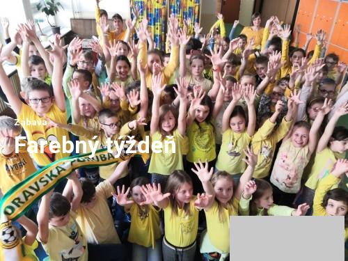 V našej škole sa od 27. do 31. januára 2020 uskutočnil Farebný týždeň. Žiaci si nosili do školy oblečenie farby, ktorá bola na ten deň určená. V pondelok prekonali očakávania žltej farby drobci z 2.B. V utorok si na žiakov počkala zelená farba, ktorú najlepšie zdolala trieda 3.B. V stredu prekvapili najmenší v 1.A. Vo štvrtok pokorili hnedú farbu deti v 2.A. V piatok mali poslednú farbu fialovú, ktorú má najviac rada trieda 4.C. Do tejto súťaže sa zapojili aj učitelia. S farbami sa vedeli zahrať tak isto, ako ich žiaci. Všetci sme tvorili jeden tím, rozvíjali sme spolupatričnosť a veru v triedach a na chodbách sme videli viac usmiatych tvárí.