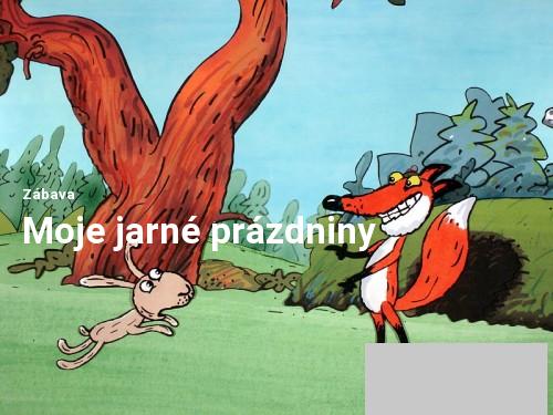 Tam som videl veľa krásnych stromov a široké lúky, ktoré pomaly zelenejú. Dokonca som uvidel aj starú tvrdú hubu na strome. No a ako som si vykračoval po úzkej cestičke, tak okolo mňa prebehol veľký hnedý - zajac! A ten zajac mal také veľké zuby, až sa mu o zem šúchali . No a aby toho nebolo málo, tak toho hnedého zajaca naháňala prefíkaná líška . To bola rýchlosť! Ale našťastie zajac preskočil mohutnú a strmú hrádzu ako nič!