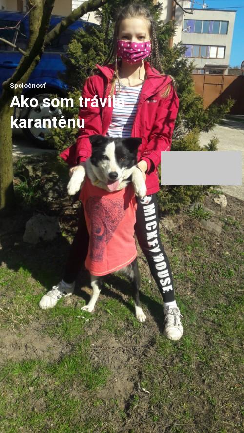 Písal sa deň 12.3.2020. Zrazu sme sa dozvedeli, že všetci žiaci škôl budú musieť zostať doma kvôli nečakanej a neobvyklej chorobe korona vírusu. Najskôr sa všetci žiaci tejto správe potešili, ale teraz by radšej chodili do školy alebo vonku. Myslím si, že všetkým žiakom už dochádza, že toto nie je sranda a nezostali sme doma iba tak. Ale je to vážna choroba, na ktorú ľudia zomierajú. Neviem ako využívajú túto karanténu iní žiaci, ale u mňa je to veľmi pestré a výborne využité. Poviem vám ako u mňa vyzerá deň v karanténe. Moje ráno je úplne obyčajné, ale teraz prejdeme na hlavnú časť dňa. Zapnem si počítač a pozriem sa, čo nové mi prišlo ohľadne školy. Ja som ten typ žiačky, čo si nič nenecháva na poslednú chvíľu. Snažím sa všetko, čo mi príde v ten deň, vypracovať a poslať späť. Keď dokončím všetky úlohy, tak si začnem plniť druhú polovičku dňa. Idem pozrieť môjho psíka na dvor, upratujem si izbu, veľmi rada varím a robím kopu iných zaujímavých aktivít. S kamarátkami som v kontakte, volávame si ohľadne školy, prípadne si pomáhame s úlohami. Ešte aby som nezabudla, najradšej trávim čas so svojou rodinou. Verím, že toto všetko utíchne a uvidíme sa v škole.
